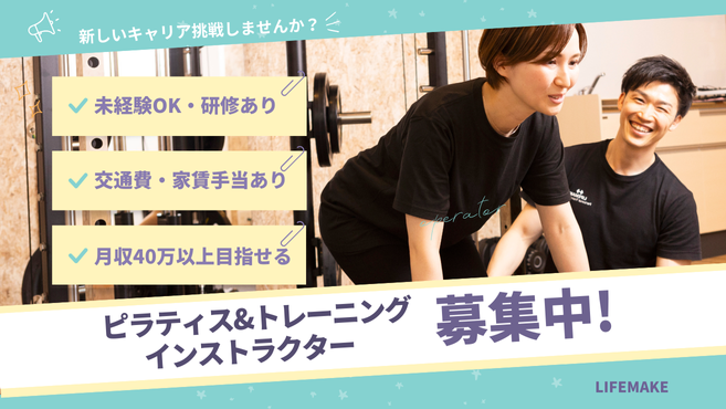 【未経験から月収40万以上】営業なし・会員数で評価|充実の研修サポート パーソナルトレーナー・ピラティスインストラクター募集