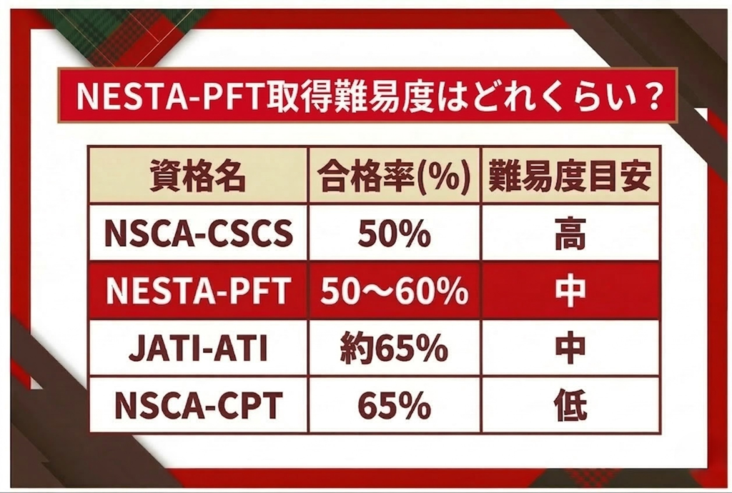 NESTA-PFT取得難易度はどれくらい?