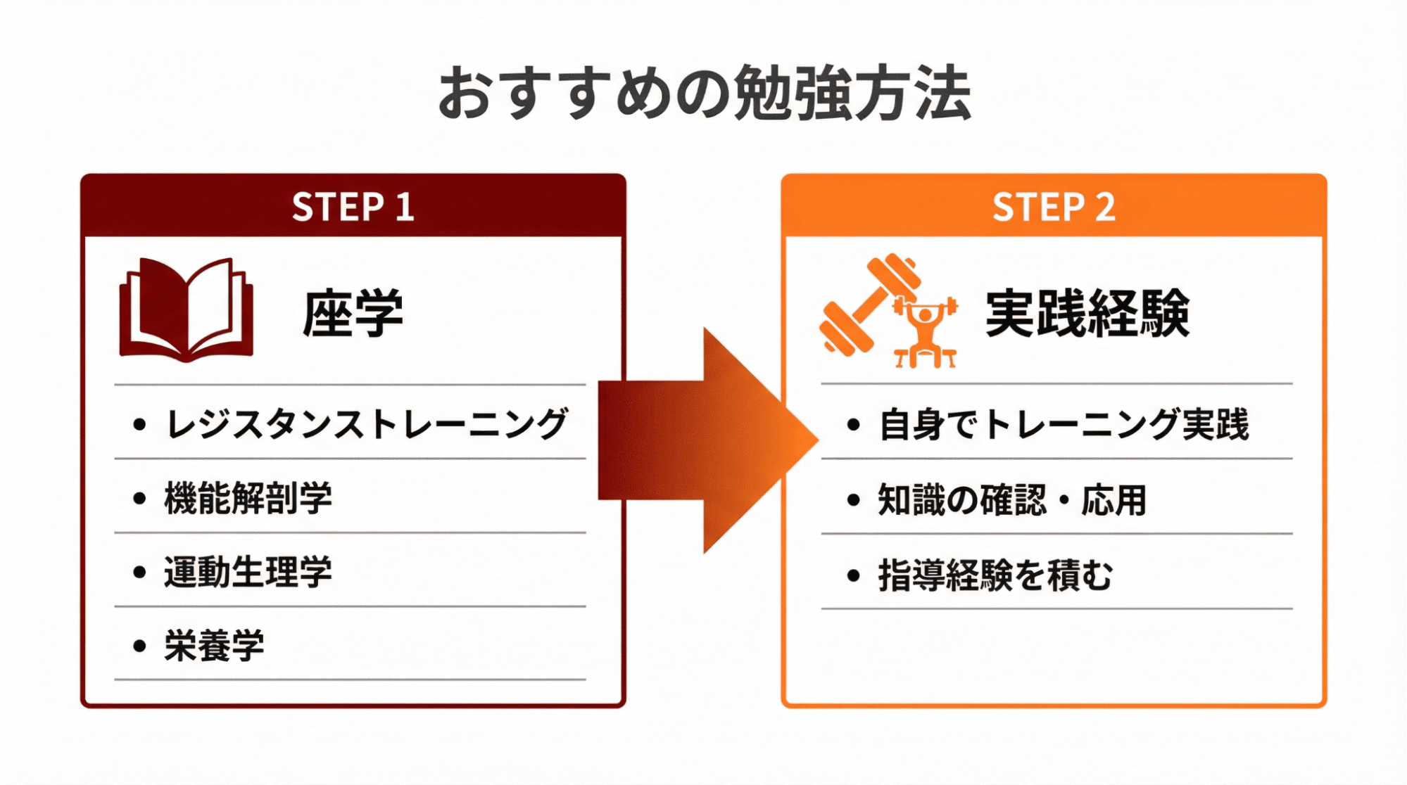 やみくもな独学では追いきれない濃い内容だからこそ、専門学校やトレーナー養成スクールなどによる各種講座は、勉強方法として検討する価値があります。