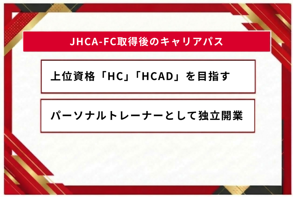 JHCA-FCの大きな魅力は、学歴やトレーナーとしての実務経験を問わず、誰でも挑戦できる門戸の広さにあります。