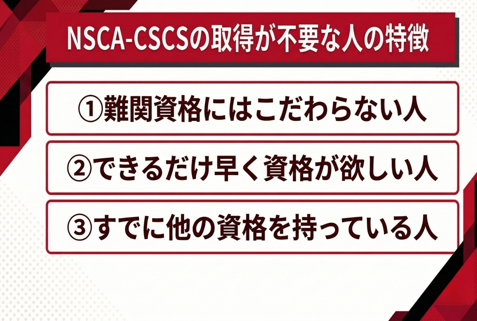 NSCA-CSCSの取得が不要な人の特徴