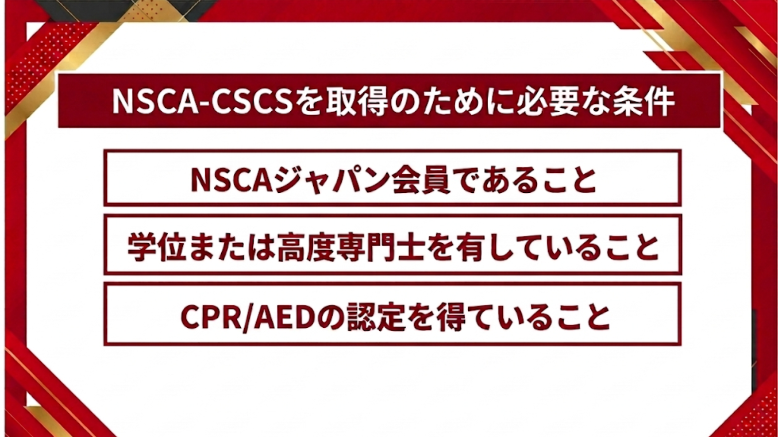 NSCA-CSCSを取得のために必要な条件