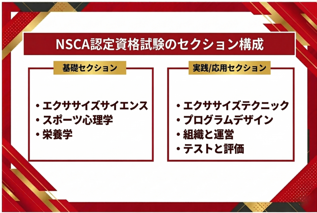 NSCA-CSCSの試験は、基礎セクションと実践/応用セクションの2部に分かれています。
