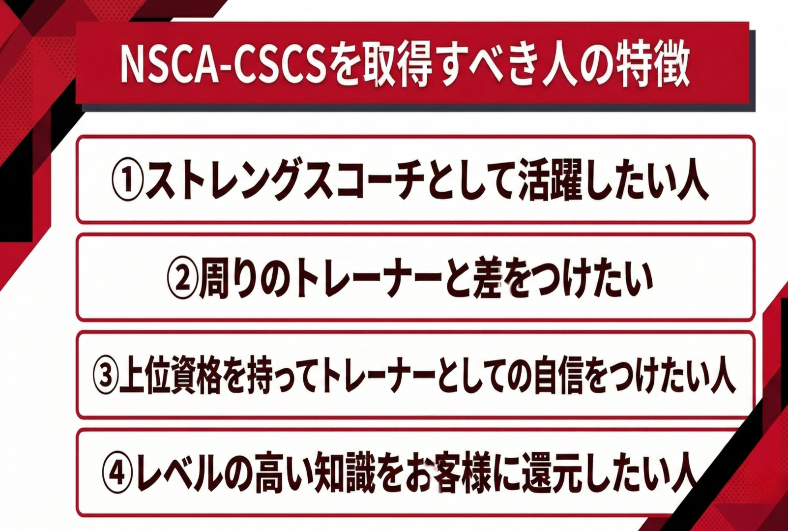 NSCA-CSCSを取得すべき人の特徴