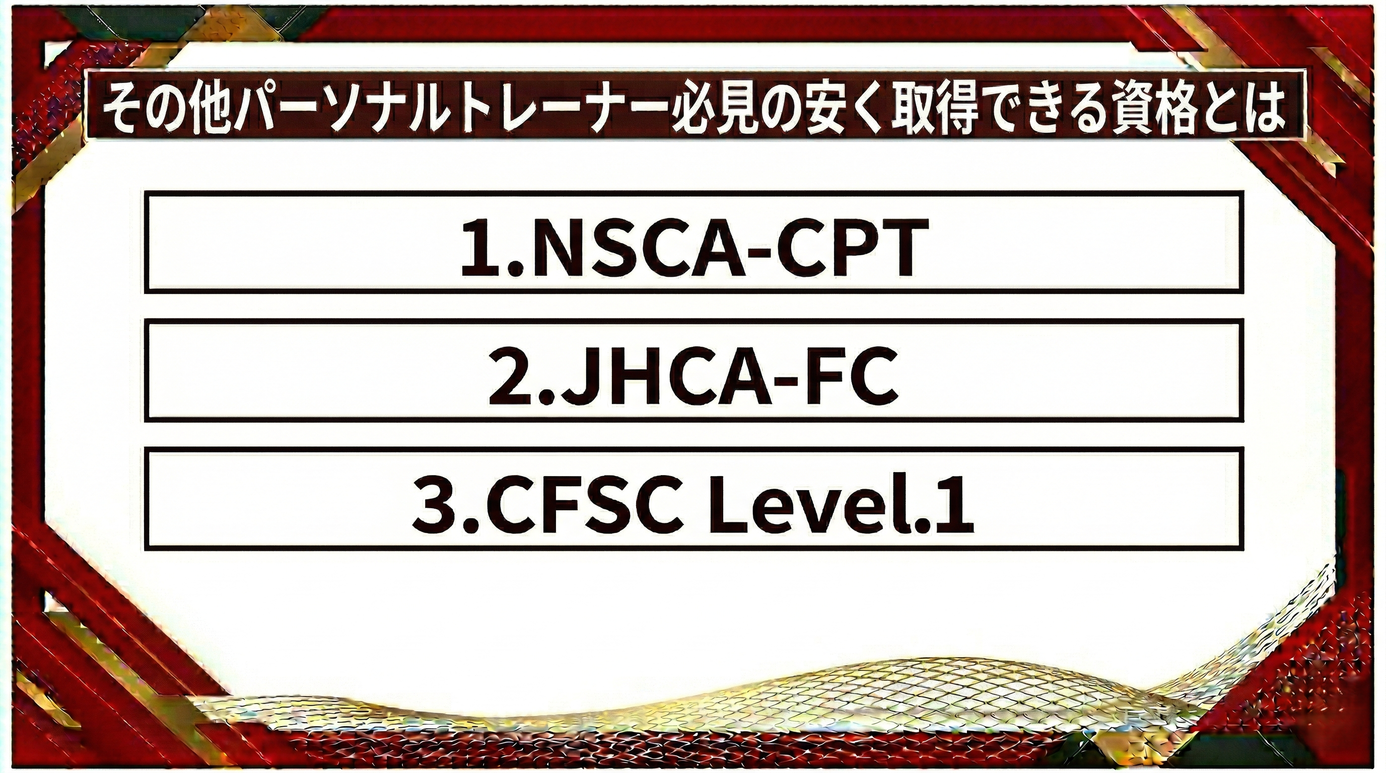 A.結論から言うと、未経験の方が最も安く取得を目指せるのは「NSCA-CPT」です。