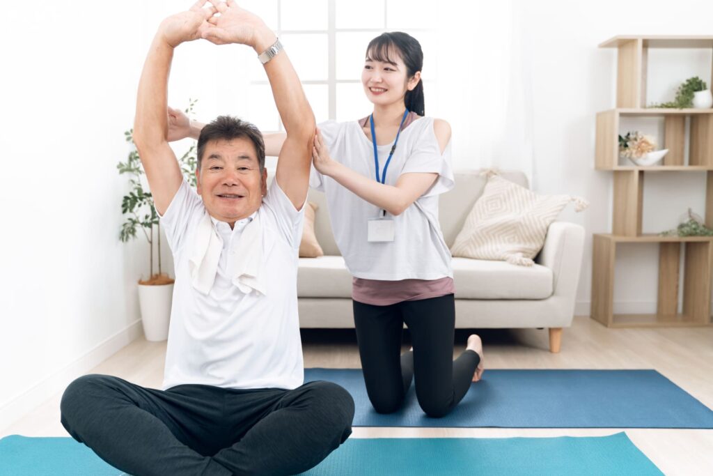 具体的なサポート内容は、トレーニングやマッサージ、ストレッチ、栄養指導などと幅広く、リハビリ施設だけでなくお客様の自宅に訪問して行う場合もあります。